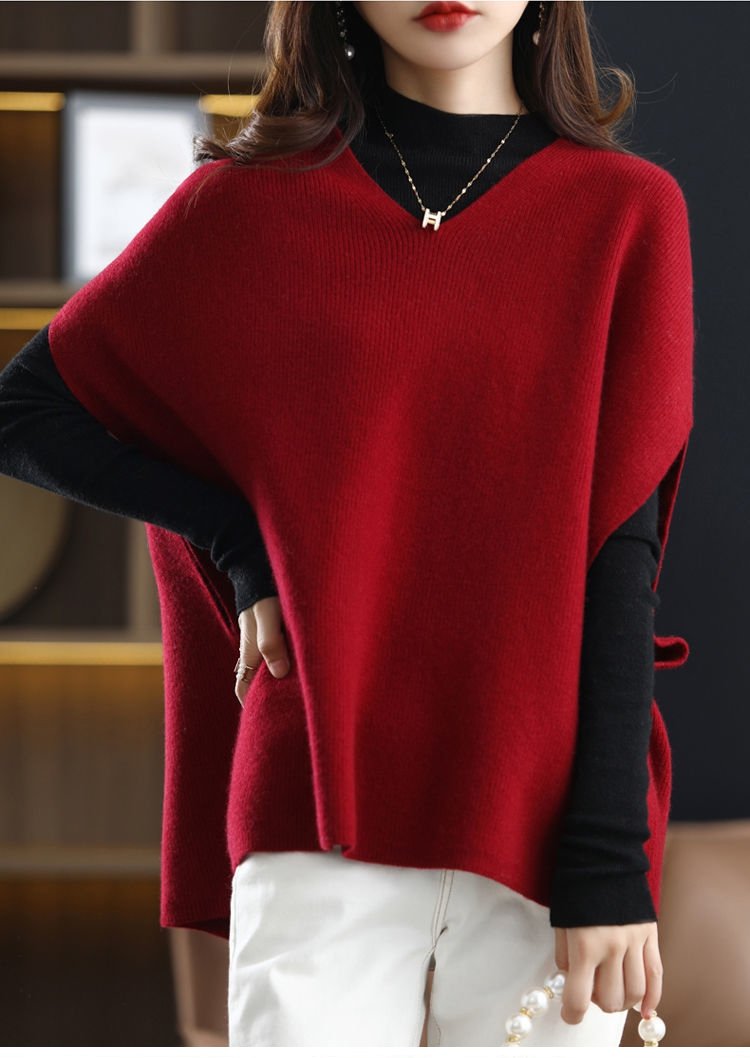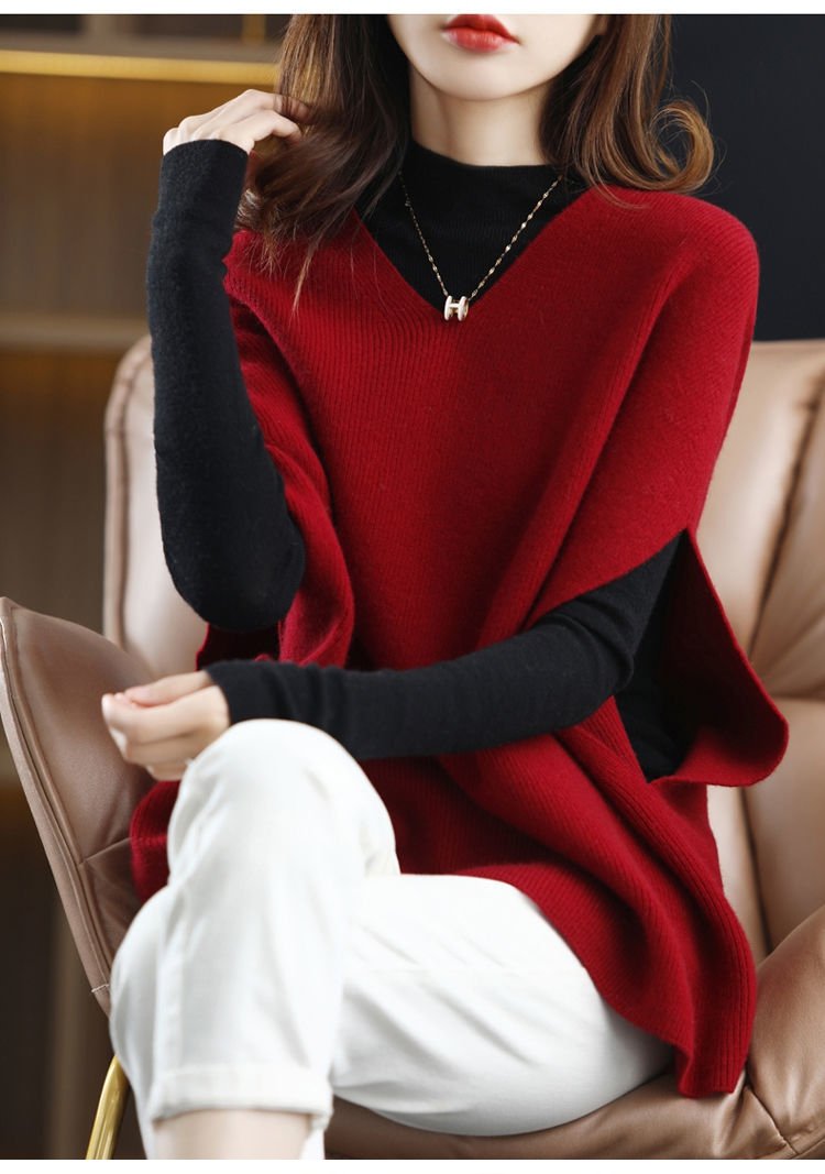 Vネックバットウィング・スリーブのウールベスト
